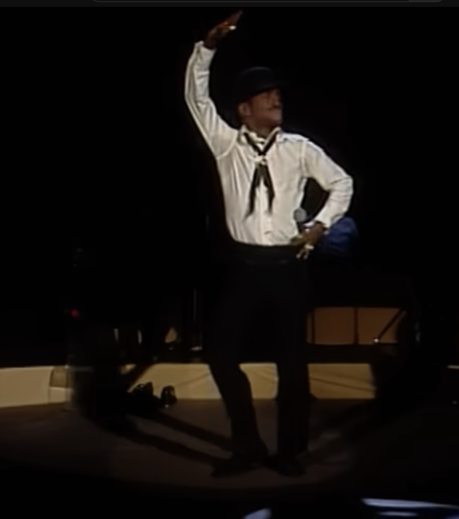 Sammy Davis Jr in Germany 1985 performing his homage to Bill "Bojangles" Robinson. Sammy states that he includes this number in all of his shows. In an interview clip, Sammy shares that the number is important to him because it honors the efforts of all the black hoofers that didn't make it big.