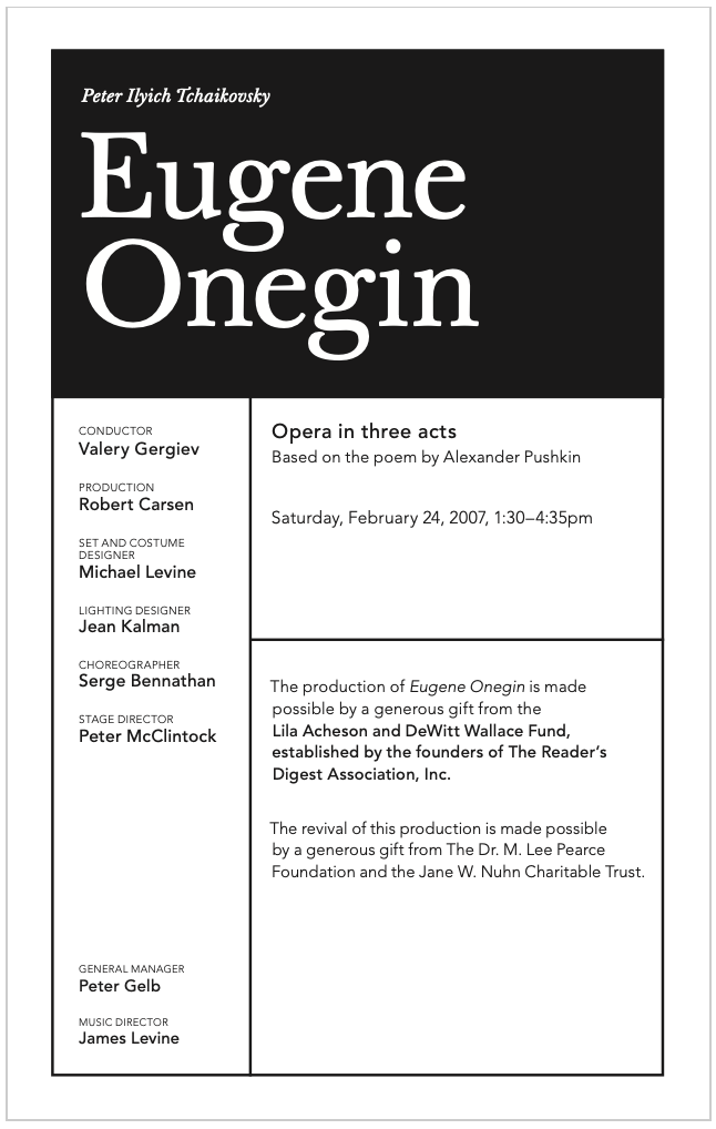 Met Opera 2007 Eugene Onegin program