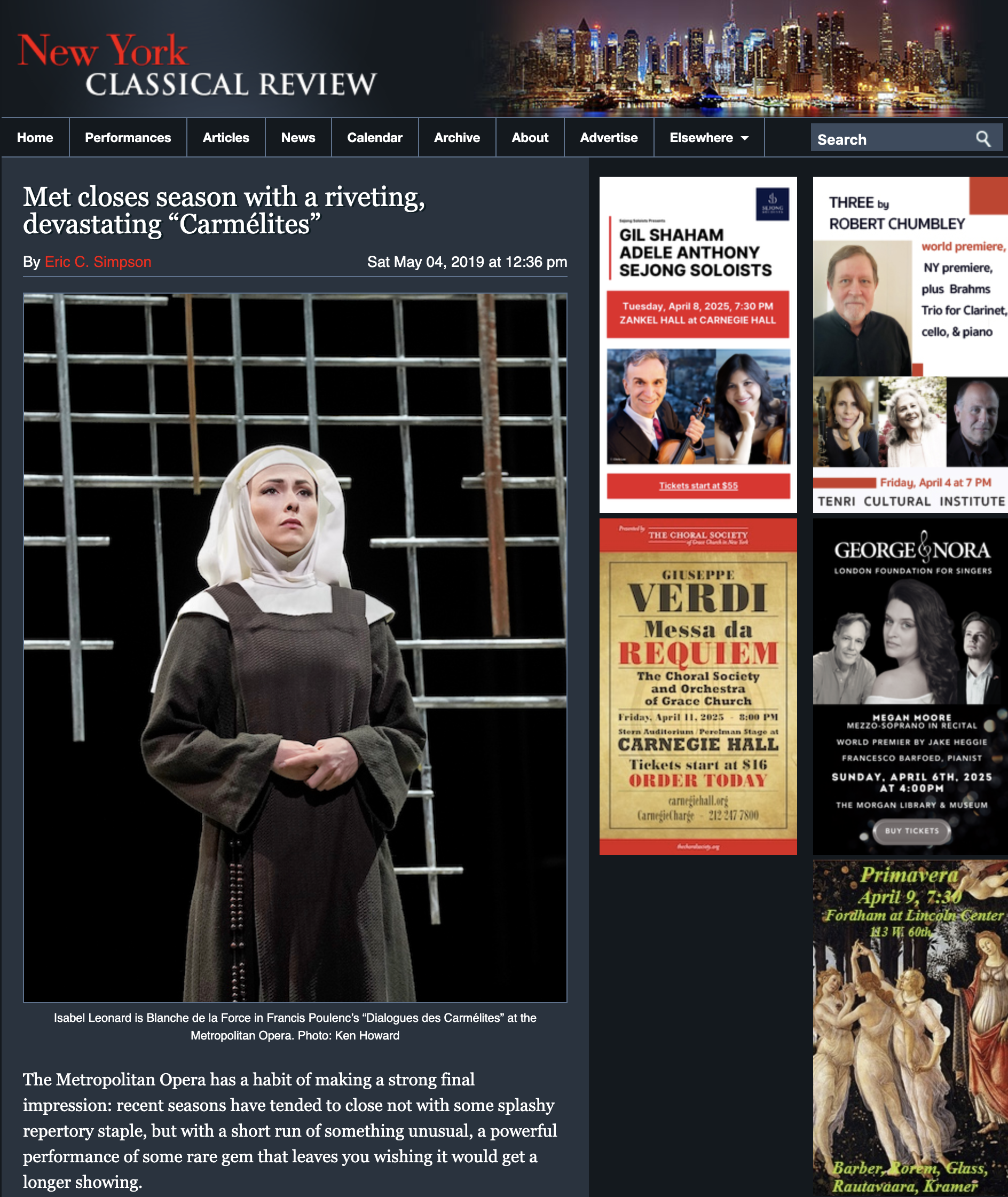 Full Eric Simpson review of the Met's 2019 production of "Les Dialogues des Carmelites".