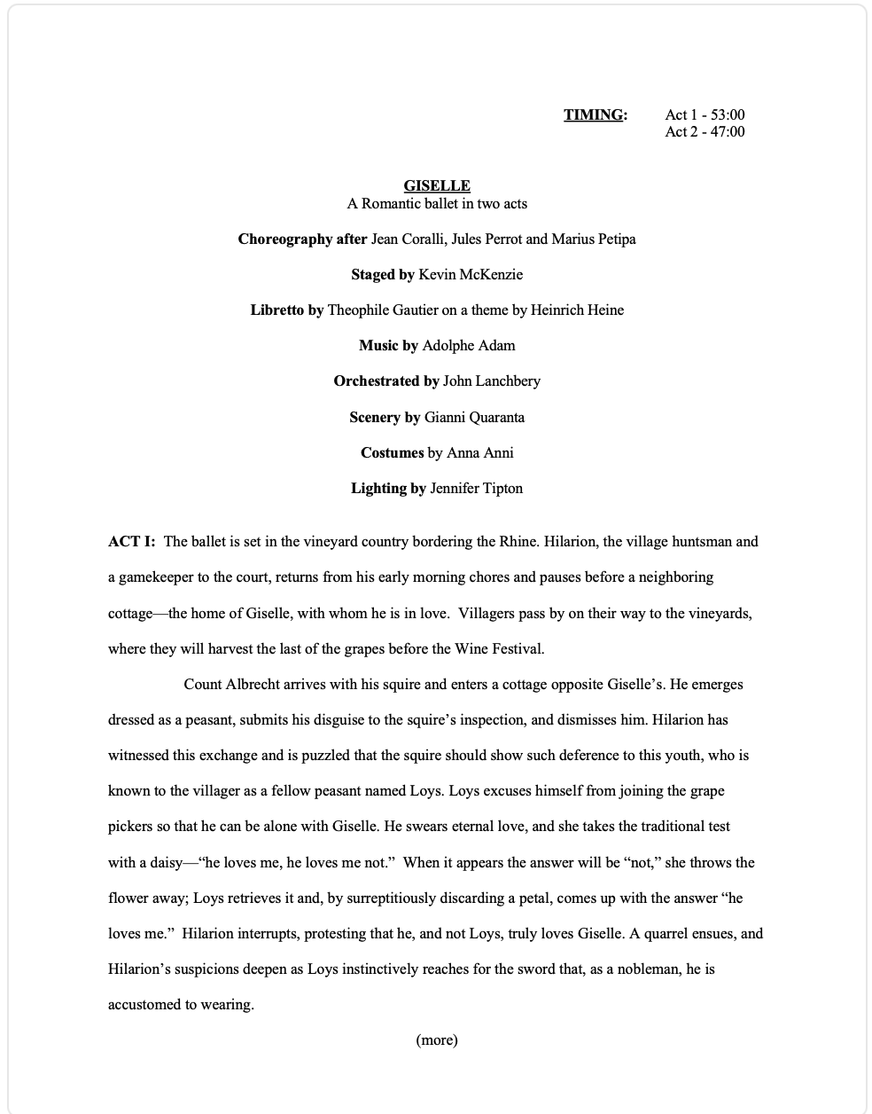 Elizabeth Kaye of ABT explains the origin and storyline of the ballet, Giselle.