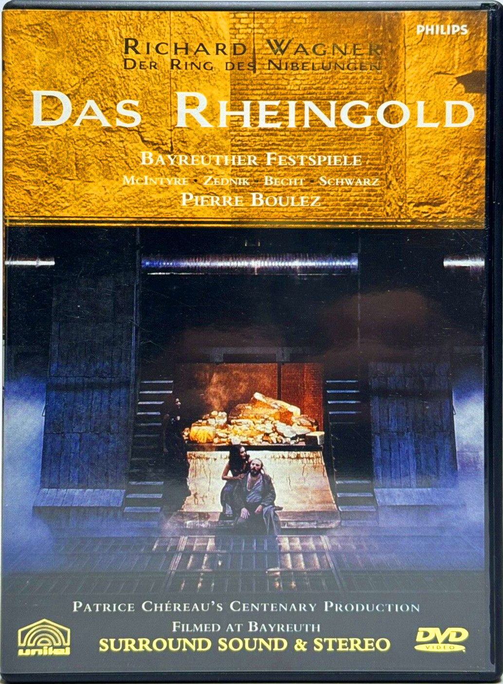This is from the famous Pierre Boulez production of the Ring Cycle in Bayreuth in 1976. It was called the "Ring of the Century" primarily because it was presented on the centenial of the inaugural Bayreuth Festival. It was not without controversy due to the setting in a modern industrial dam. The matter of importance is that the staging and acting help tell the story very well. It's a great version to get started with. More about Das Rheingold ...