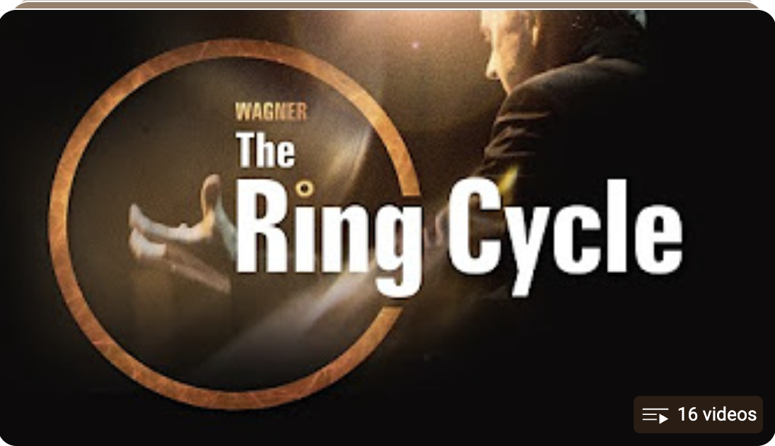 Because of the length of the operas of the Ring Cycle (15hrs 35 mins -- Das Rheingold 2hrs 25 mins; Die Walkure 3 hrs 48 mins; Siegfried 3 hrs 57 mins; Götterdämerung 4 hrs 25 mins), we will likely never be able to present Wagner's masterwork under the auspices of the Four Seasons Opera Club. However, the significance of the Ring is such that it cannot be ignored or overlooked. The link above is to a good production of the Ring that is a an excellent first Ring.